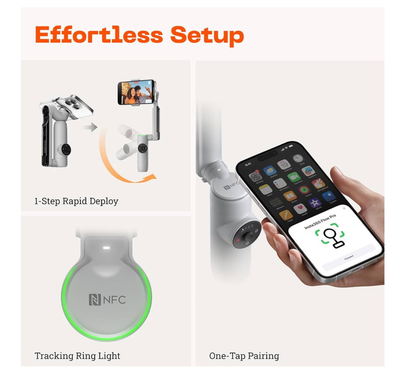 Insta360 Flow - مثبت جيمبال مدعم بالذكاء الاصطناعي للهواتف الذكية، يدعم Apple DockKit، تتبع حركة لا نهائية بزاوية 360 درجة، تثبيت ثلاثي المحاور، حامل ثلاثي مدمج، محمول وقابل للطي، تتبع بالذكاء الاصطناعي
