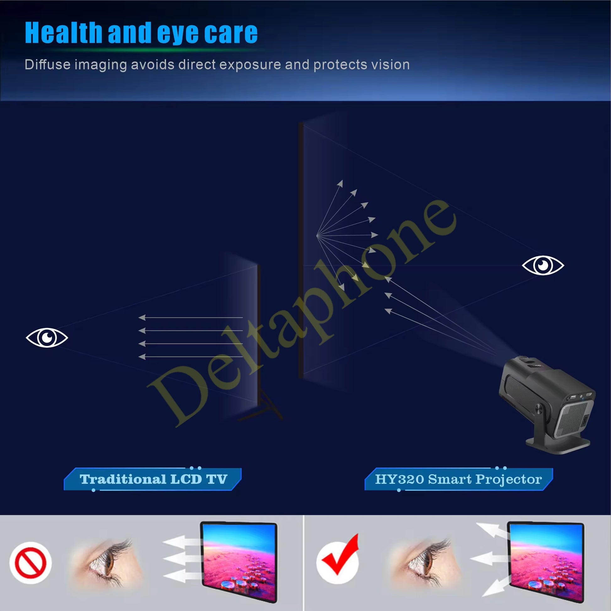 جهاز العرض المحمول HY320 بدقة 1080P HD وتقنية WiFi6 + Bluetooth 5.0